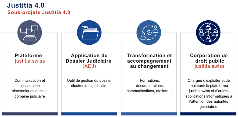 Le projet national Justitia 4.0 comprend quatre sous-projets.