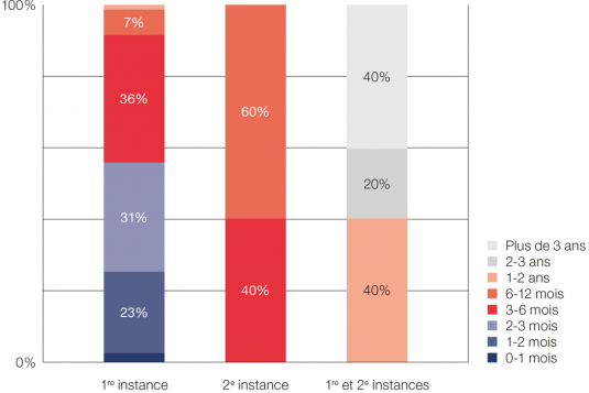 - En deuxième instance, la quasi-totalité des procédures sont terminées en moins d'un an.